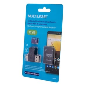 Kit Multilaser MC151 4 em 1: Cartão De Memória Ultra High Speed-I + Adaptador USB Dual Drive + Adaptador SD 32GB