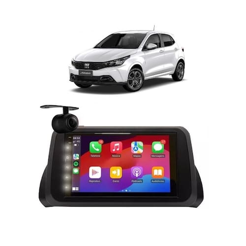 Acompanha moldura + câmera de ré (acompanha chicote para versão sem comando de volante)