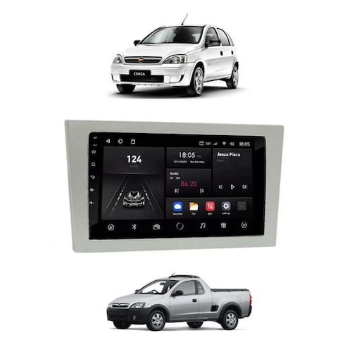 Kit Multimídia Corsa Meriva 2002 até 2011 Montana 2003 até 2009 Vectra 2005 até 2011 Mold Prata 7 Pol Carplay AndroidAuto USB FM BT - 708BR Roadstar