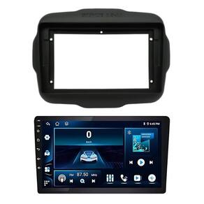 Kit multimídia renegade 2015 a 2022 com carplay e android auto com camera de ré Kit multimídia android 9 polegadas com moldura preta para renegade 2015 a 2022