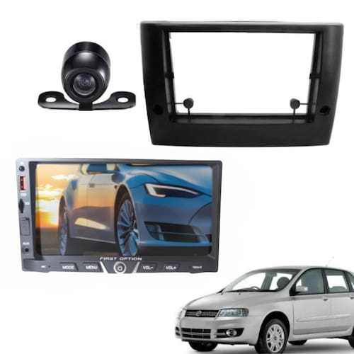 - 01 aparelho mp5 first option - 01 controle remoto - 01 chicote para instalação - 01 moldura 2 din cor preta fiat stilo - 01 chicotes para conexão - 01 camera de ré
