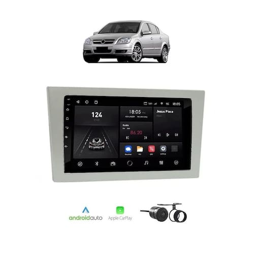 Kit Multimídia Corsa Meriva 2002 até 2011 Montana 2003 até 2009 Vectra 2005 até 2011 Mold Prata 7 Pol Carplay AndroidAuto USB FM BT - 708BR Roadstar