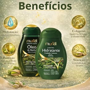 Indicado para todos os tipos de pele, inclusive para gestantes, o Kit Muriel Pistache Com Colágeno é perfeito para quem não abre mão de uma rotina de cuidados completa e eficaz. Sinta a diferença de uma pele profundamente hidratada, nutrida e revitalizada a cada banho.