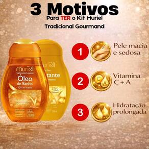 Descubra a experiência completa de cuidado e perfumação com o Kit Muriel Tradicional Gourmand. Este conjunto exclusivo, da renomada marca MURIEL, foi cuidadosamente desenvolvido para proporcionar uma rotina de banho e hidratação que encanta os sentidos e nutre a pele. Ideal para quem busca uma pele macia, perfumada e intensamente hidratada, o kit é a solução perfeita para transformar seu dia a dia em um momento de puro prazer e bem-estar.