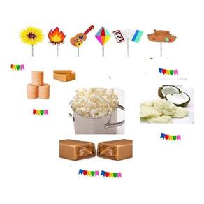 Com esse kit você terá todos os deliciosos e tradicionais doces de Festa Junina / Julina/ São João Observação: Será enviado a marca e o produto disponível em todos com uma ótima qualidade. Caso não tenha algum tipo de doce que informamos abaixo será enviado outro produto que não está na lista para substituir. No kit nº40 contêm 180 unidades: - 50 unidades de Paçoca. - 50 unidades de Doce de Amendoim Formato Liso. - 25 unidades de Cocada. - 5 pacotes de pipoca Popcorn 100 gramas sabor variado - 50 unidades de Pingo de Leite