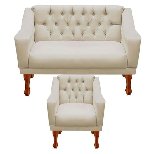 Kit Namoradeira + 1 Poltrona Decorativa Grécia Dritex Cor:suede Bege