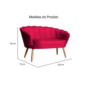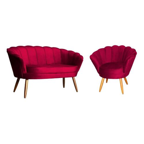 Kit Namoradeira + 1 Poltrona Decorativa Pétala Veludo Vermelho Pés Madeira Mz Decor
