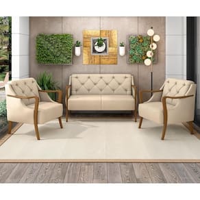 Com um design clássico e um toque de contemporaneidade, a poltrona para sala 2 lugares e as poltronas decorativas atendem todos os requisitos de quem busca bom gosto e qualidade, já que consegue combinar materiais e texturas como a madeira dos braços e o revestimento do estofado. Além disso, as bordas, braços e pés curvos juntamente com a costura capitonê completam a lista de adjetivos. Ahh, o melhor de tudo é que esse jogo de poltrona pode ser aproveitado em vários ambientes, desde a sala de estar até escritório e recepção. Demais não é mesmo?!