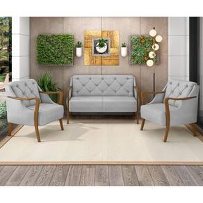 Com um design clássico e um toque de contemporaneidade, a poltrona para sala 2 lugares e as poltronas decorativas atendem todos os requisitos de quem busca bom gosto e qualidade, já que consegue combinar materiais e texturas como a madeira dos braços e o revestimento do estofado. Além disso, as bordas, braços e pés curvos juntamente com a costura capitonê completam a lista de adjetivos. Ahh, o melhor de tudo é que esse jogo de poltrona pode ser aproveitado em vários ambientes, desde a sala de estar até escritório e recepção. Demais não é mesmo?!