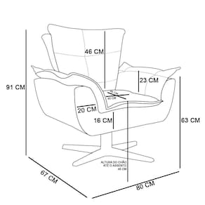 Poltrona( L x A x P): 80 x 91 x 62 cm.