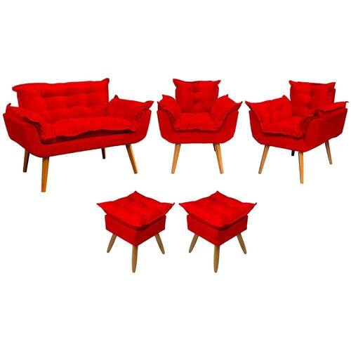 Kit Namoradeira 2 Poltronas E 2 Puffs Para Sala Manicure Consultório Alice Suede