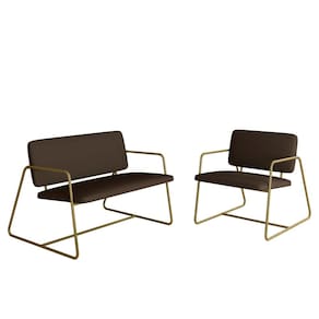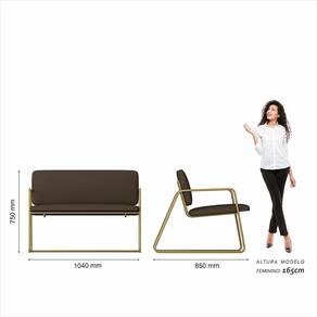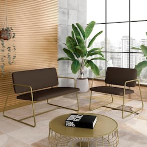 Detalhes Técnicos - Assentos e Encostos Tapeçados, Estofados e Fixos - Densidade do Assento e Encosto: D20 - Tonalidade Estrutura: Dourado - Tonalidade do Tecido: Suede Marrom - Material: Metalon - Medida Poltrona Namoradeira: A:75CM x L:104CM x P:85CM - Medida Poltrona: A:75CM x L:68CM x P:85CM - Medida do chão até o assento: 45cm de altura - Poltrona e Namoradeira suporta até 120KG (cada) - Montagem: Difícil