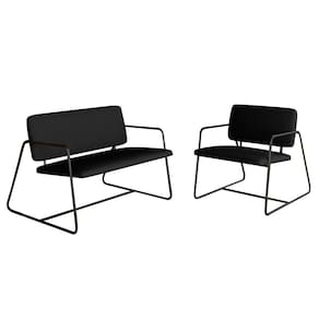 Detalhes Técnicos - Assento e Encosto Tapeçados, Estofados e Fixos - Espuma do Assento e do Encosto: D20 - Tonalidade: Preto Fosco (estrutura)/Suede Preto(estofado) - Material: Metalon - Medida Poltrona Namoradeira: A:75CM x L:104CM x P:85CM - Medida do chão até o assento: 45cm de altura -Poltrona e Namoradeira suporta até 120KG (cada) - Montagem: Difícil - Medida Poltrona: A:75CM x L:68CM x P:85CM - Medida do chão até o assento: 45cm de altura - Poltrona suporta até 90KG - Montagem: Difícil Conteúdo da Embalagem - 01 namoradeira + 01 poltrona - Manual de Montagem - Acessórios para Montagem