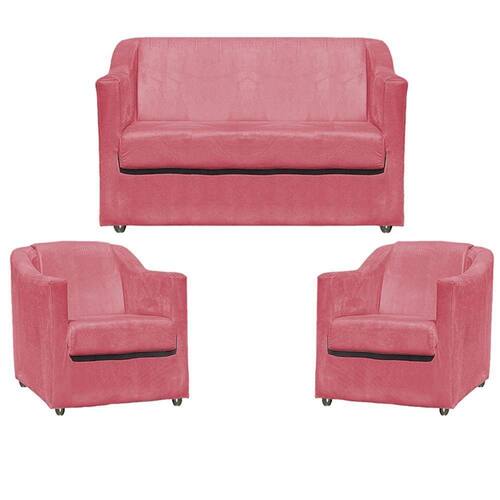 Sua estrutura é fabricada em madeira maciça, garantindo resistência e durabilidade. O estofamento em tecido suede oferece um toque macio e refinado, A namoradeira e a Poltrona se destaca pelos pés em plástico cromado, agregando charme e estabilidade. Com qualidade excepcional, esse kit transforma qualquer espaço em um ambiente aconchegante e sofisticado.