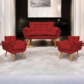 Eleve o charme e o conforto do seu ambiente com o Kit Namoradeira + 2 Poltronas Alice, um conjunto sofisticado e versátil, ideal para salas de estar, escritórios, recepções e consultórios. Com um design elegante e acolhedor, adapta-se perfeitamente a diferentes estilos de decoração, combinando funcionalidade e requinte em cada detalhe.