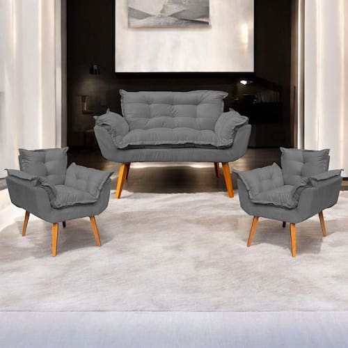 Eleve o charme e o conforto do seu ambiente com o Kit Namoradeira + 2 Poltronas Alice, um conjunto sofisticado e versátil, ideal para salas de estar, escritórios, recepções e consultórios. Com um design elegante e acolhedor, adapta-se perfeitamente a diferentes estilos de decoração, combinando funcionalidade e requinte em cada detalhe.