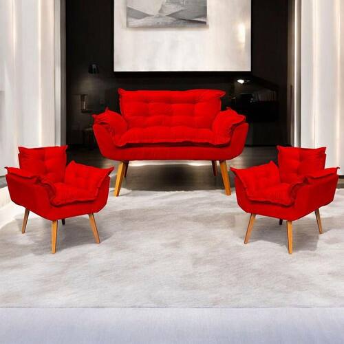Kit Namoradeira Decorativa + 2 Poltronas Para Sala Recepção Manicure Consultório Alice Suede