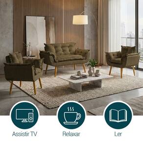 Sua estrutura é fabricada em madeira maciça e eucalipto, garantindo resistência e durabilidade. O estofamento em tecido suede oferece um toque macio e refinado, enquanto o preenchimento em fibra siliconada proporciona extremo conforto. A namoradeira conta com pés de madeira na tonalidade castanho, agregando charme e estabilidade, enquanto a poltrona se destaca pelos pés em formato trapézio, conferindo um toque moderno. Com qualidade excepcional, esse kit transforma qualquer espaço em um ambiente aconchegante e sofisticado.