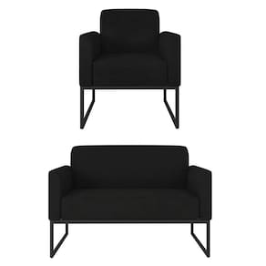 O momento em que decidimos mobiliar nossa casa é um evento muito especial, pois representa o que gostamos e o que irá refletir através dos móveis que irão compor cada espaço do nosso Lar.Cada escolha é uma oportunidade de imprimir o que sentimos, e para Sala de Estar desejamos conforto e beleza, para a hora de um bate-papo ou um belo café da tarde. O Kit Namoradeira e 1 Poltrona Decorativa Base Industrial Preta Maressa S07 Suede Preto - Ibiza pode transformar seu ambiente em algo único, sua estrutura em metal é firme e com fino acabamento, o estofado é macio e traz a leveza que o Estilo Industrial pode fazer em sua essência.Faça uma escolha inteligente e adquira conosco este Conjunto de Poltrona Namoradeira e Poltrona Decorativa, um toque de classe para o seu cantinho favorito.EspecificaçõesDimensões do Produto(Largura x Altura x Profundidade):Namoradeira: 113 x 76 x 64 cm.Poltrona: 65 x 77 x 64 cm.Peso: 33 kg.Outras MedidasProfundidade do assento: 46 cm.Largura do assento: 95 cm.Altura do assento ao chão: 44 cm.Altura do encosto: 35 cm.Altura Interna do Braço: 18 cm.Altura dos pés: 30 cm.Características do ProdutoMaterial da Estrutura: Madeira reflorestada de Eucalipto..Material da Espuma: Espuma D-28 no assento e encosto e D-23 nos braços..Peso Suportado: Até 360 Kg.Revestimento: Suede.Tipo de Encosto: Fixo.Tipo de Assento: Fixo.Quantidade de Lugares: 3 Lugares.Possui Pés: Sim.Material dos Pés: Base Industrial.Diferenciais:- Design moderno.- Percintas elásticas no assento.Sistema de Montagem: O produto é enviado montado, sendo necessário apenas fixar a base.Volumes: 3 Volumes.Conteúdo da Embalagem: 1 Namoradeira e 1 Poltrona Decorativa.Garantia do Fabricante: 90 dias contra defeito de fabricação.Montagem: Recomendamos que seja feita por um profissional.Recomendação de Limpeza: Utilize pano levemente úmido.Observações importantes:- Produto para uso residencial em ambiente interno, não devendo ficar exposto diretamente ao sol, calor e umidades excessivas.- Pode haver alguma diferença de tonalidade entre a imagem e o produto real, por conta do tratamento de imagens e a calibração de cores do seu monitor.- As imagens são meramente ilustrativas, não acompanham objetos de decoração e eletrônicos.- Confira o estado da embalagem, não devendo assinar o comprovante em caso de danos.- Não asseguramos, no ato da entrega, por subir escadas/elevadores, pelo transporte por guincho em apartamentos ou montagem, desmontagem e instalações. Eventuais despesas são por conta do comprador.- Confira as dimensões do produto e certifique-se de que passará normalmente por supostos elevadores, portas, escadas e/ou corredores de sua residência.
