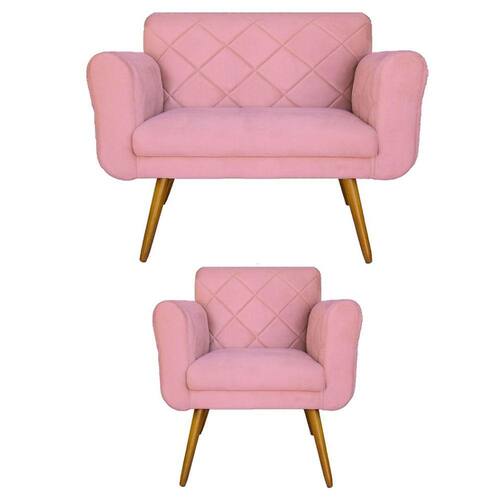Kit Namoradeira e 1 Poltrona Estofada Para Sala de Tv Isabella Suede Rosa - LM DECOR