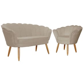 Kit Namoradeira e 1 Poltrona Pétala Decorativa Veludo Cappuccino - Montanaris Decor - Bege Claro