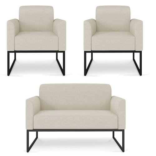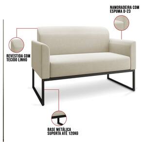 Kit Namoradeira e 2 Poltronas Decorativas Base Industrial Preta Maressa A19 Linho Grosso Bege - Ibiza