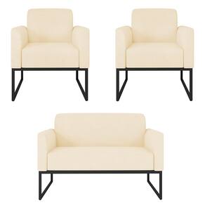 Kit Namoradeira e 2 Poltronas Decorativas Base Industrial Preta Maressa S03 Suede Bege - Ibiza