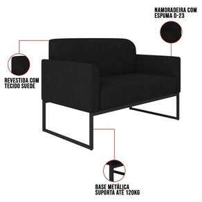 O momento em que decidimos mobiliar nossa casa é um evento muito especial, pois representa o que gostamos e o que irá refletir através dos móveis que irão compor cada espaço do nosso Lar.Cada escolha é uma oportunidade de imprimir o que sentimos, e para Sala de Estar desejamos conforto e beleza, para a hora de um bate-papo ou um belo café da tarde. O Kit Namoradeira e 2 Poltronas Decorativas Base Industrial Preta Maressa S07 Suede Preto - Ibiza pode transformar seu ambiente em algo único, sua estrutura em metal é firme e com fino acabamento, o estofado é macio e traz a leveza que o Estilo Industrial pode fazer em sua essência.Faça uma escolha inteligente e adquira conosco este Conjunto de Poltrona Namoradeira e Poltrona Decorativa, um toque de classe para o seu cantinho favorito.EspecificaçõesDimensões do Produto (Largura x Altura x Profundidade):Namoradeira: 113 x 76 x 64 cm.Poltronas: 65 x 77 x 64 cm.Peso: 46 kg.Outras MedidasProfundidade do assento: 46 cm.Largura do assento: 95 cm.Altura do assento ao chão: 44 cm.Altura do encosto: 35 cm.Altura Interna do Braço: 18 cm.Altura dos pés: 30 cm.Características do ProdutoMaterial da Estrutura: Madeira reflorestada de Eucalipto..Material da Espuma: Espuma D-28 no assento e encosto e D-23 nos braços..Peso Suportado: Até 480 Kg.Revestimento: Suede.Tipo de Encosto: Fixo.Tipo de Assento: Fixo.Quantidade de Lugares: 4 Lugares.Possui Pés: Sim.Material dos Pés: Base Industrial.Diferenciais:- Design moderno.- Percintas elásticas no assento.Sistema de Montagem: O produto é enviado montado, sendo necessário apenas fixar a base.Volumes: 4 Volumes.Conteúdo da Embalagem: 1 Namoradeira e 2 Poltronas Decorativas.Garantia do Fabricante: 90 dias contra defeito de fabricação.Montagem: Recomendamos que seja feita por um profissional.Recomendação de Limpeza: Utilize pano levemente úmido.Observações importantes:- Produto para uso residencial em ambiente interno, não devendo ficar exposto diretamente ao sol, calor e umidades excessivas.- Pode haver alguma diferença de tonalidade entre a imagem e o produto real, por conta do tratamento de imagens e a calibração de cores do seu monitor.- As imagens são meramente ilustrativas, não acompanham objetos de decoração e eletrônicos.- Confira o estado da embalagem, não devendo assinar o comprovante em caso de danos.- Não asseguramos, no ato da entrega, por subir escadas/elevadores, pelo transporte por guincho em apartamentos ou montagem, desmontagem e instalações. Eventuais despesas são por conta do comprador.- Confira as dimensões do produto e certifique-se de que passará normalmente por supostos elevadores, portas, escadas e/ou corredores de sua residência.