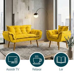 Composição e Estrutura: Sua estrutura é fabricada em madeira maciça e eucalipto, garantindo resistência e durabilidade. O estofamento em tecido suede oferece um toque macio e refinado, enquanto o preenchimento em fibra siliconada proporciona extremo conforto. A namoradeira conta com pés de madeira na tonalidade castanho, agregando charme e estabilidade, enquanto a poltrona se destaca pelos pés em formato palito, conferindo um toque moderno. Com qualidade excepcional, esse kit transforma qualquer espaço em um ambiente aconchegante e sofisticado.