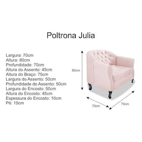 Gostaria de um móvel que trouxesse mais elegância e sofisticação para o seu lar? O Kit Namoradeira e Poltrona Julia A02 é sua melhor opção! Com característica moderna e com acabamento de qualidade, estes produtos atenderão suas expectativas! Não perca essa oportunidade e adquira já a sua!Especificações Técnicas do Kit Namoradeira e Poltrona Julia A02: -Namoradeira Julia A02:- Altura: 80 cm;- Largura Total: 120 cm;- Profundidade: 70 cm;- Peso: 35 Kg;- Peso Suportado: 120 Kg;-Poltrona Julia A02:- Altura: 80 cm;- Largura Total: 69 cm;- Profundidade: 70 cm;- Peso: 20 Kg;- Peso Suportado: 120 Kg;Diferenciais do Kit Namoradeira e Poltrona Julia A02: -Namoradeira Julia A02:- Design Moderno;- Detalhes em Botonê;- Detalhes do Pé: acompanham pés de madeira de alta resistência;-Poltrona Julia A02:- Material da Estrutura: fabricado com Madeira Pinus e Eucalipto Reflorestada, e alguns detalhes em MDF;- Tipo de Assento: Estofado e com espuma de densidade D-26;- Tipo de Encosto: Estofado e com espuma de densidade D-18;- Detalhes do Pé: acompanham pés de madeira de alta resistência;Recomendações de limpeza: -Limpar com flanela limpa e seca. Não molhar o móvel e não expor em lugar úmido ou próximo de fontes de calor. Não usar produtos abrasivos.Observações Importantes: - As imagens ambientadas são meramente ilustrativas e podem apresentar itens que não compõe o produto;- Objetos decorativos que aparecem na foto não acompanham o produto;- As cores do produto podem variar de acordo com o monitor, a iluminação do ambiente, ou sua percepção visual;- O Kit Namoradeira e Poltrona Julia A02 chegará montado para você, bastando encaixar os pés;- Confira as dimensões antes da compra e certifique-se de que o produto passará por elevadores, portas e corredores;- Ao receber seus produtos, verifique no ato do recebimento qualquer dano na embalagem;- Produto para uso residencial em ambiente interno, não devendo ficar exposto diretamente ao sol, calor e umidades excessivas.