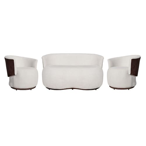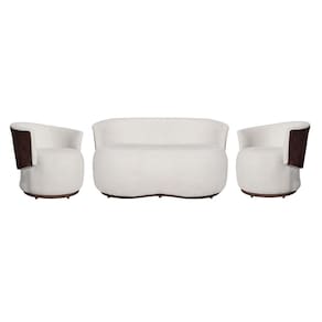 Adicione um toque de modernidade ao seu ambiente com nossas poltronas de bouclé e design, o kit são revestidas em tecido bouclé em composê no tecido estilo calacata marrom na parte de trás. Desfrute da textura única do bouclé em combinação com detalhes em tecido macio em nossa poltrona exclusiva.