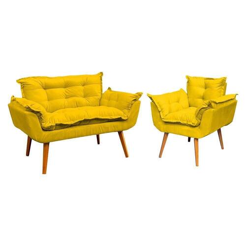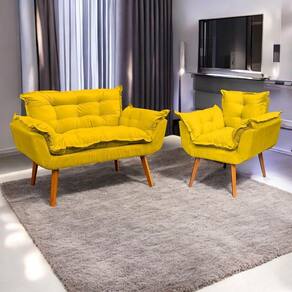 Sua estrutura é fabricada em madeira maciça e eucalipto, garantindo resistência e durabilidade. O estofamento em tecido suede oferece um toque macio e refinado, enquanto o preenchimento em fibra siliconada proporciona extremo conforto. A namoradeira conta com pés de madeira na tonalidade castanho, agregando charme e estabilidade, enquanto a poltrona se destaca pelos pés em formato trapézio, conferindo um toque moderno. Com qualidade excepcional, esse kit transforma qualquer espaço em um ambiente aconchegante e sofisticado.