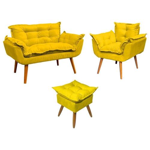 Kit Namoradeira Poltrona E Puff Decorativo Para Sala Manicure Consultório Alice Suede