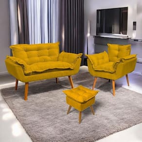 - Não nos responsabilizamos por montagens, subidas de escadas ou elevadores no momento da . Kit Namoradeira Poltrona e Puff Decorativo Para Sala Alice Suede