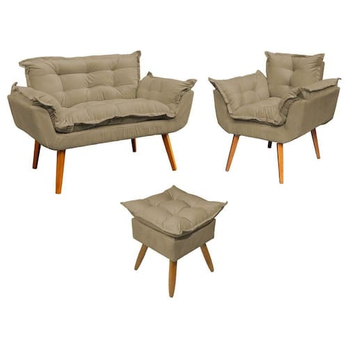 - Não nos responsabilizamos por montagens, subidas de escadas ou elevadores no momento da . Kit Namoradeira Poltrona e Puff Decorativo Para Sala Alice Suede