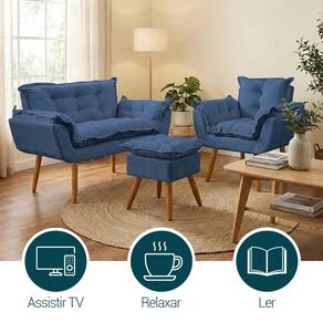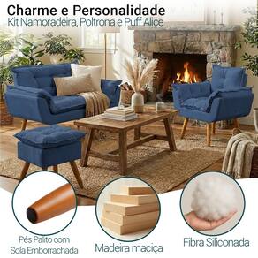 Transforme seu ambiente com o Kit Alice, composto por namoradeira, poltrona e puff, combinando sofisticação, conforto e versatilidade. Com design elegante, adapta-se a diversos estilos de decoração, desde os mais modernos aos clássicos. Ideal para salas de estar, recepções, consultórios e escritórios, esse conjunto harmoniza perfeitamente com diferentes paletas de cores e elementos decorativos. Além da estética refinada, proporciona um ambiente acolhedor e convidativo, valorizando cada detalhe do seu espaço.