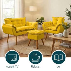 Transforme seu ambiente com o Kit Alice, composto por namoradeira, poltrona e puff, combinando sofisticação, conforto e versatilidade. Com design elegante, adapta-se a diversos estilos de decoração, desde os mais modernos aos clássicos. Ideal para salas de estar, recepções, consultórios e escritórios, esse conjunto harmoniza perfeitamente com diferentes paletas de cores e elementos decorativos. Além da estética refinada, proporciona um ambiente acolhedor e convidativo, valorizando cada detalhe do seu espaço.