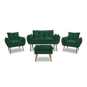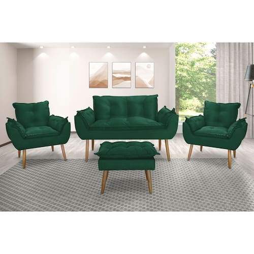 Kit Namoradeira Sofá Opala + 2 Poltronas Cadeira Opala + 1 puff - Verde