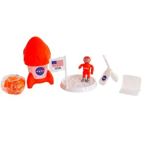 Prepare-se para conhecer novos planetas e viver grandes aventuras! Mais um da nossa coleção Space Collection, uma parceria Nasa. Um super foguete para soltar a imaginação com massinha que vem com partículas que imitam o solo dos planetas e um astronauta articulado com acessórios para moldar e tornar a brincadeira ainda mais divertida.