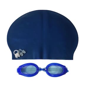 Kit Natação 3 Peças - Touca, Óculos, Protetores - Azul