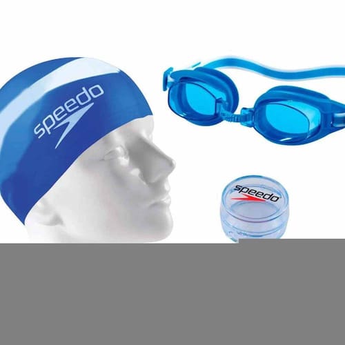 Nome: Kit Natação Speedo Swim SlcGênero: Unissex Indicado para: Natação Composição: Lente: Policarbonato, com tratamento antiembaçante e proteção UV, Ventosas: Silicone, Narizeira Poliuretano, Tira e presilhas: Silicone, Touca e Protetor de ouvidos de Silicone Contém: 1 Óculos de natação, 1 Touca, 1 par de par de protetores de ouvidos Código do artigo: 6617895-080Marca: Speedo