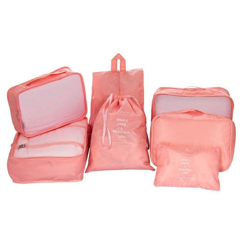 Kit necessaire organizador para mala de viagem coleção basic rosa Viajar é incrível, mas manter as coisas organizadas pode ser um desafio. Com o nosso conjunto de organizadores de mala de viagem de 7 peças, você pode desfrutar de sua viagem sem se preocupar com bagunça. Cada organizador tem uma função específica, como guardar sapatos, roupas íntimas, meias, eletrônicos e muito mais. Com tamanhos diferentes, eles se encaixam perfeitamente em qualquer mala e ajudam a maximizar o espaço. Além disso, eles são feitos de material resistente e fácil de limpar, então você pode usá-los em várias viagens. Não importa se você é um viajante frequente ou apenas faz uma viagem de fim de semana, esse conjunto de organizadores é essencial para manter suas coisas arrumadas e fáceis de encontrar. O kit contém 7 peças nos seguintes tamanhos:Cubos:G: 42x32x12 cmM: 34x28x12 cmP: 32x23x12 cmPp: 28x20x12cmNecessaires:1: 36x27 cm2: 35x21 cm3: 27x16 cmMaterial: poliéster Marca: Mimos E Viagns