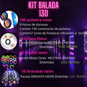 Kit Neon Festa 130 Peças: Luz Negra, Pulseiras, Óculos E Mai