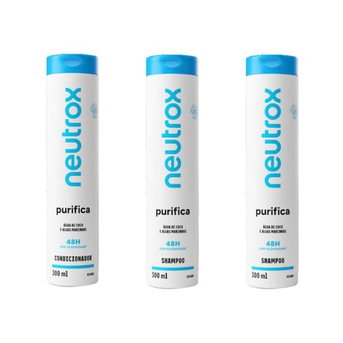 Kit neutrox purifica 1 condicionador 300ml + 2 shampoo 300ml Descrição O kit neutrox purifica 1 condicionador 300ml + 2 shampoos 300ml é a solução perfeita para quem busca cabelos limpos, purificados e com uma sensação de frescor prolongada. O shampoo 300ml oferece uma limpeza profunda, removendo resíduos e impurezas sem agredir os fios, enquanto o condicionador 300ml hidrata e suaviza, deixando os cabelos mais leves, macios e com brilho natural. Formulado com ingredientes especiais, este kit proporciona cuidados diários para cabelos saudáveis, renovados e livres de acúmulo de produtos, garantindo uma sensação de limpeza e frescor duradoura. Modo de uso Shampoo neutrox purifica 300ml Aplique o shampoo nos cabelos molhados, massageando suavemente até formar espuma. Enxágue bem e, se necessário, repita o processo. Condicionador neutrox purifica 300ml Após lavar os cabelos com o shampoo, aplique o condicionador nos cabelos úmidos, distribuindo uniformemente do comprimento às pontas. Deixe agir por 2 a 3 minutos e enxágue bem. Para um resultado ainda mais eficaz, use o kit regularmente. Marca: Não Informado Ean: 7908945229155