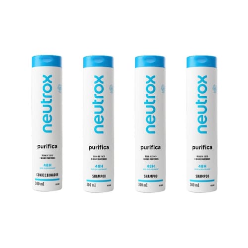 Kit neutrox purifica 1 condicionador 300ml + 3 shampoo 300ml Descrição O kit neutrox purifica 1 condicionador 300ml + 3 shampoos 300ml oferece um cuidado completo para cabelos que precisam de uma limpeza profunda e nutrição eficaz. O shampoo 300ml é ideal para remover impurezas e resíduos acumulados nos fios, deixando-os limpos e com a sensação de frescor. O condicionador 300ml hidrata e suaviza os cabelos, devolvendo maciez e brilho sem pesar. Este kit é perfeito para quem busca cabelos purificados, leves e revitalizados, com uma sensação de frescor que dura o dia todo. Modo de uso Shampoo neutrox purifica 300ml Aplique o shampoo nos cabelos molhados, massageando suavemente até formar espuma. Enxágue bem e, se necessário, repita o processo. Condicionador neutrox purifica 300ml Após lavar os cabelos com o shampoo, aplique o condicionador nos cabelos úmidos, distribuindo do comprimento às pontas. Deixe agir por 2 a 3 minutos e enxágue bem. Para melhores resultados, use o kit completo regularmente. Marca: Não Informado