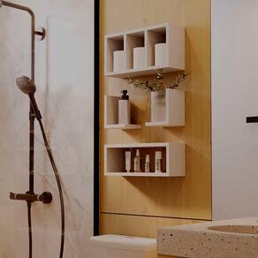 Kit é composto por: 01 Nicho com divisórias, 01 Nicho retangular e 02 prateleiras pequenas