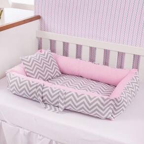 Kit Ninho Redutor + Almofada Amamentação Bebê Chevron Rosa