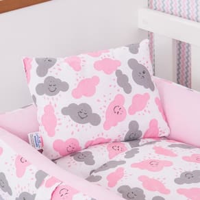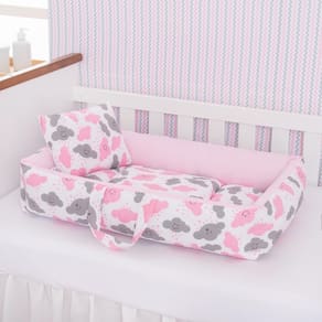 Kit Ninho Redutor + Almofada Amamentação Bebê Nuvem Rosa