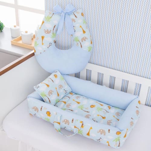 Kit Ninho Redutor + Almofada Amamentação Bebê Safari Azul
