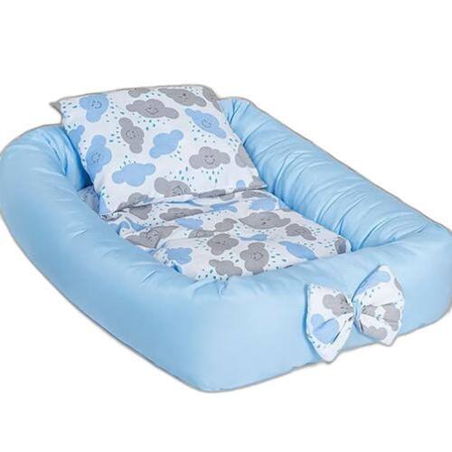 Kit Ninho Redutor Berço Baby Menino Nuvem Azul Claro 4 Peças